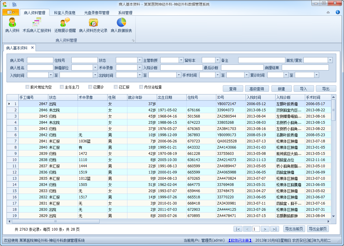 我們開發(fā)了一系列的病人資料管理系統(tǒng),包括《神經(jīng)外科病人資料管理系統(tǒng)》、《脊柱外科病人資料管理系統(tǒng)》、《腫瘤外科病人資料管理系統(tǒng)》等軟件,豐富的開發(fā)經(jīng)驗(yàn)和行業(yè)經(jīng)驗(yàn)?zāi)転槟_啟病人資料數(shù)字化管理的金鑰匙,提高日常的管理效率。